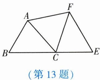13. 如图,点$B$,$C$,$E$在同一条直线上,$\angle B = \angle E = \angle ACF = 60^{\circ}$,$AC = CF$,$AB = 4$,$EF = 5$,则$BE$的长为
