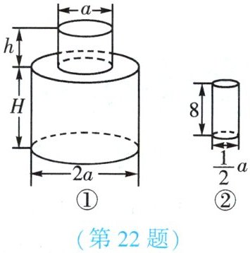 22. (★★★)图①所示的瓶子中盛满水,如果将这个瓶子中的水全部倒入图②所示的杯子中,那么你知道一共需要多少个这样的杯子吗? (单位:cm)