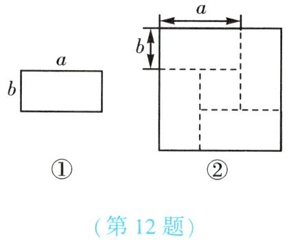 12.(★★)如图,小明利用4张图①所示的长为$a$、宽为$b$的长方形卡片拼成图②所示的图形,则根据图②的面积关系能验证的恒等式为【
