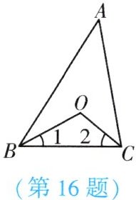 16. (★★★)(1)如图,在$\triangle ABC$中,$\angle ABC和\angle ACB的平分线相交于点O$,若$\angle A = 42^{\circ}$,求$\angle BOC$的度数;
