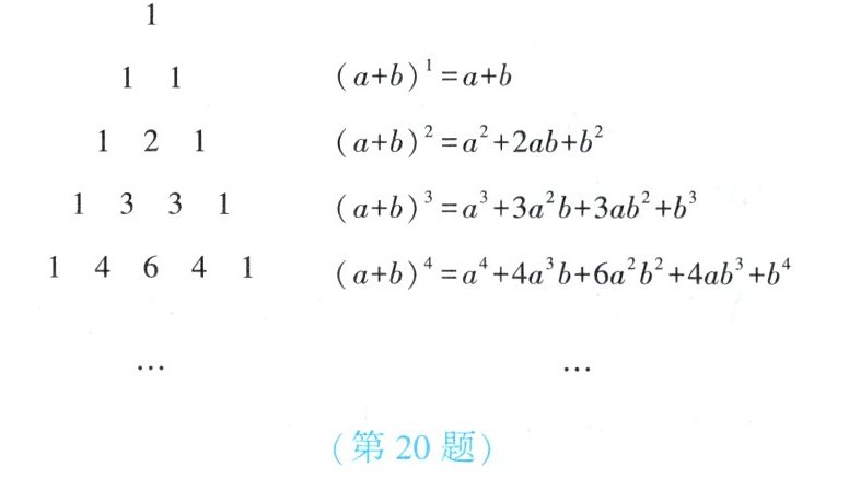 20.(★★★)阅读材料:“杨辉三角”,又称“贾宪三角”,是二项式系数在三角形中的一种几何排列,西方人帕斯卡发现时,已比宋代杨辉要迟三百多年。如图,根据你观察的“杨辉三角”的排列规律,解决下列问题。