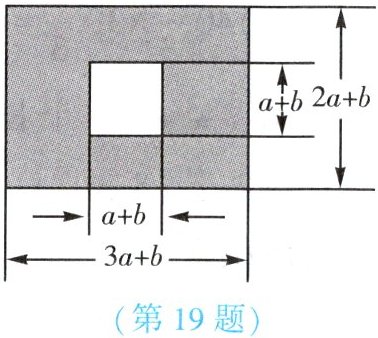 19.(★★)如图,某市有一块长为$(3a + b)m$、宽为$(2a + b)m$的长方形地块,中间是边长为$(a + b)m$的正方形,规划部门计划在中间的正方形上修建一座雕像,四周的阴影部分进行绿化。