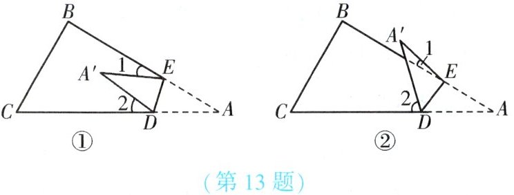 13. (★★★)如图①,把△ABC 纸片沿 DE 折叠,点 A 落在四边形 BCDE 内部 A'处.