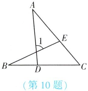 10. (★★)如图,点 D,E 分别在线段 BC,AC 上,连接 AD,BE. 若∠A = 35°,∠B = 25°, ∠C = 50°,则∠1 的度数为 【