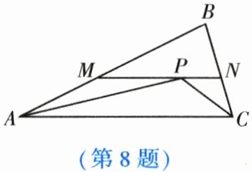 8. 如图,P为$\triangle ABC$内一点,过点P的线段MN分别交AB,BC于点M,N,且点M,N分别在PA,PC的垂直平分线上.若$∠ABC = 80^{\circ}$,则$∠APC$的度数为 [