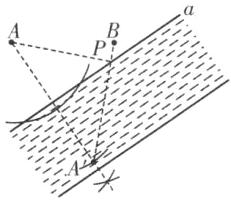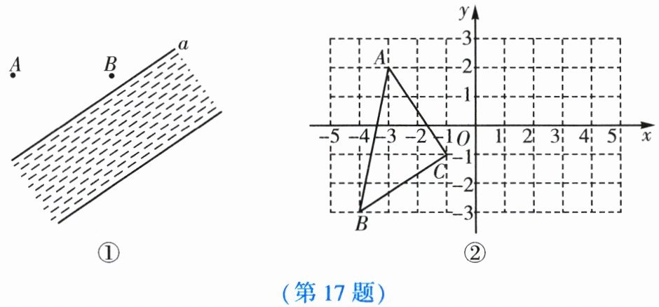 17. (8分)(1)如图①,A,B是两个蓄水池,都在河岸a的同侧.为了方便灌溉作物,要在河边建一个抽水站M,将河水送到A,B两地,问:该站M建在河边什么地方,可使所修的渠道最短?试在图中确定该点(尺规作图,保留作图痕迹,不写作法).