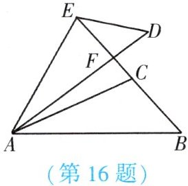 16. (★★)如图,△ABC≌△ADE,线段BC的延长线过点E,与线段AD交于点F,∠ACB = ∠AED = 108°,∠CAD = 12°,∠B = 48°,则∠DEF的度数为