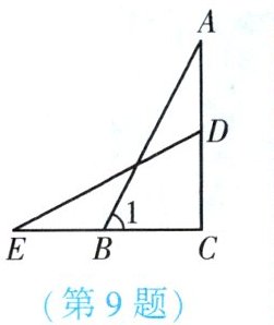 9. (★)如图,△ABC≌△EDC,∠C = 90°,点D在线段AC上,点E在线段CB的延长线上,则∠1 + ∠E的度数为