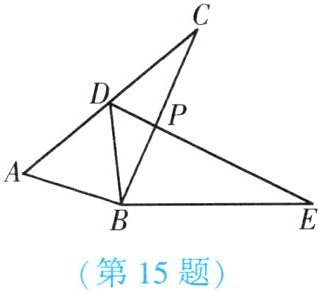 15. (★★)如图,△ABC≌△DBE,点D在边AC上,BC与DE交于点P. 已知∠ABE = 162°,∠DBC = 30°,AD = DC = 2.5,BC = 4.