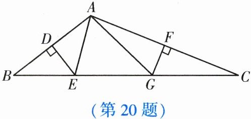 20. (9 分)在 $ \triangle ABC $ 中, $ DE,FG $ 分别是边 $ AB,AC $ 的垂直平分线.