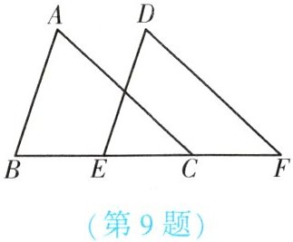 9. (★★) 如图,点 B,E,C,F 在同一条直线上,AB = DE,∠A = ∠D,AB // DE. 求证:BE = CF.