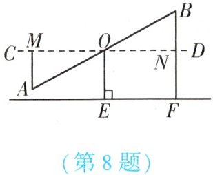 8. (★) 如图是小明和小颖玩跷跷板时的示意图,O 是跷跷板 AB 的中点,支柱 OE 与地面垂直,且 OE 的长度为 50 cm,若小明到水平线 CD 的距离 AM 为 40 cm,则小颖到地面的距离为