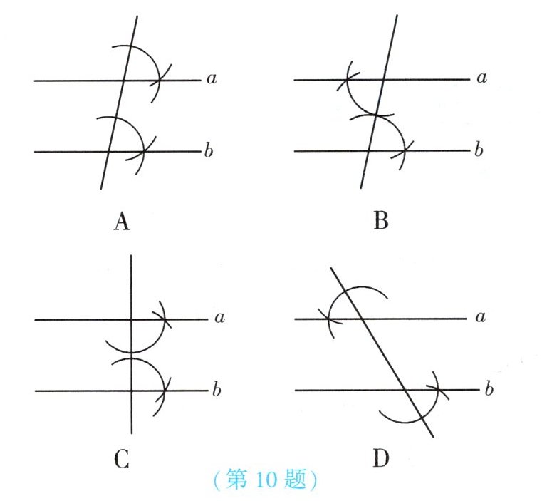10. (★★)如图,不一定能判定直线$a平行于直线b$的是【