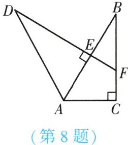 8. (★★)如图,在△ABC中,∠ACB= 90°,点D在△ABC外,连接AD,作DE⊥AB于点E,交BC于点F,AD= AB,AE= AC.