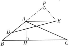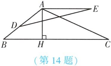 14. (★★★)如图,在△ABC中,AH是高,AE//BC,AB= AE,在AB边上取点D,连接DE,DE= AC,若$S_{△ABC}= 5S_{△ADE},BH= 1,$则BC的长为______.