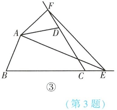 (3) 如图③,若 $ E $, $ F $ 分别是边 $ BC $, $ CD $ 延长线上的点,其他已知条件不变,此时线段 $ BE $, $ EF $, $ DF $ 之间的数量关系为______。(不用证明)