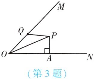 3. (★)如图,OP 平分∠MON,PA⊥ON 于点 A,Q 是射线 OM 上的一个动点,若 PA = 2,则 PQ 的最小值为【