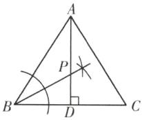 4. (★★)尺规作图:如图,在△ABC 中,AB = AC,AD⊥BC 于点 D。请在线段 AD 上求作一点 P,使得点 P 到 AB 的距离等于 PD 的长(保留作图痕迹,不写作法)。