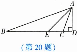 20. (9分)在△ABC中,∠B= 20°,∠ACB= 110°,AE平分∠BAC,AD⊥BD于点D,求∠EAD的度数.