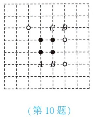 10. (★★) (2024·甘肃) 围棋起源于中国,古代称为“弈”. 如图是两名同学的部分对弈图,轮到白方落子,观察棋盘,白方如果落子于点