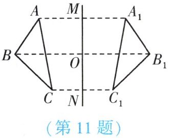 11. (★) 如图,若 $ \triangle ABC $ 与 $ \triangle A_1B_1C_1 $ 关于直线 $ MN $ 对称, $ BB_1 $ 交 $ MN $ 于点 $ O $,则下列说法不一定正确的是 【