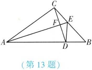 13. (★★) 如图,在 $ \triangle ABC $ 中, $ \angle CAB = 36^{\circ} $, $ \angle B = 48^{\circ} $, $ AB = 9 $, $ AC = 7 $, $ BC = 5.4 $, $ D $, $ E $ 分别是边 $ AB $ 和 $ BC $ 上的点,若 $ \triangle ACE $ 和 $ \triangle ADE $ 关于直线 $ AE $ 对称, $ CD $ 交 $ AE $ 于点 $ F $,则 $ \angle ADC $ 的度数为