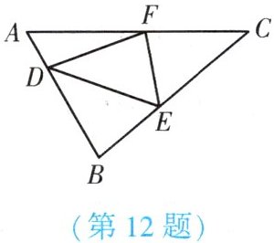 12. (★★) 如图,在 $ \triangle ABC $ 中, $ D $, $ E $, $ F $ 三点分别在 $ AB $, $ BC $, $ AC $ 上,且四边形 $ BEFD $ 是以 $ DE $ 所在直线为对称轴的轴对称图形,四边形 $ CFDE $ 是以 $ FE $ 所在直线为对称轴的轴对称图形. 若 $ \angle C = 40^{\circ} $,则 $ \angle DFE $ 的度数为