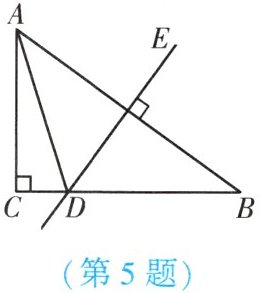 5. (2024·凉山州)如图,在 $ Rt \triangle ABC $ 中,$ \angle ACB = 90^{\circ} $,$ DE $ 垂直平分 $ AB $ 交 $ BC $ 于点 $ D $,若 $ \triangle ACD $ 的周长为 $ 50 cm $,则 $ AC + BC $ 等于【