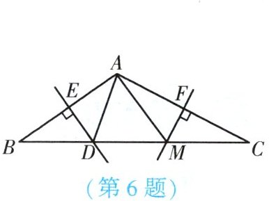 6. 如图,在 $ \triangle ABC $ 中,$ AB $,$ AC $ 的垂直平分线分别交 $ BC $ 于点 $ D $、点 $ M $,交 $ AB $ 于点 $ E $,交 $ AC $ 于点 $ F $,若 $ BC = 4 $,则 $ \triangle ADM $ 的周长为【