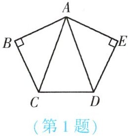 1. 如图,在五边形 $ ABCDE $ 中,$ AB = AE $,$ BC = CD = DE $,$ \angle BCD = \angle CDE $,$ AB \perp BC $,$ AE \perp ED $。连接 $ AC $,$ AD $,小明发现该图形是轴对称图形。