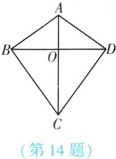 14. 如图,在四边形 $ ABCD $ 中,$ \angle ABC = \angle ADC = 90^{\circ} $,$ AB = AD $。求证:$ CO $ 垂直平分 $ BD $。
