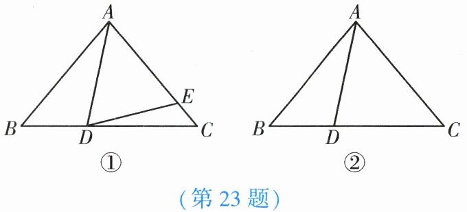 23. (11分)在△ABC中,∠B= ∠C,点D在边BC上,点E在AC上,连接DE,∠ADE= ∠AED.