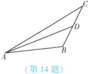 14. (★★)如图,在 $ \triangle ABC $ 中($ AC > AB $),$ AC = 2BC $,边 $ BC $ 上的中线 $ AD $ 把 $ \triangle ABC $ 的周长分成 $ 60 cm $ 和 $ 40 cm $ 两部分,求边 $ AC $ 和 $ AB $ 的长. (提示:设 $ CD = x cm $)