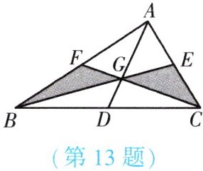 13. (★★)如图,$ G $ 为 $ \triangle ABC $ 三边中线 $ AD,BE,CF $ 的交点,$ S_{\triangle ABC} = 12 cm^2 $,则阴影部分的面积为【
