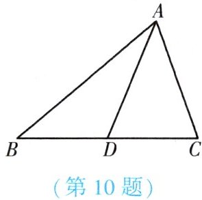 10. (★★)如图,在 $ \triangle ABC $ 中,$ AD $ 是边 $ BC $ 上的中线,$ \triangle ABD $ 的周长比 $ \triangle ADC $ 的周长多 $ 2 $,且 $ AB $ 与 $ AC $ 的长的和为 $ 10 $.