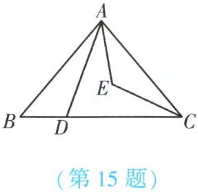 15. (★★)如图,在 $ \triangle ABC $ 中,$ AB = AC $,$ \angle BAC = 80^{\circ} $,$ D $ 是边 $ BC $ 上一点(不与点 $ B $,$ C $ 重合),$ \angle DAC $ 和 $ \angle BCA $ 的平分线交于点 $ E $。
