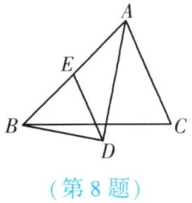8. (★★)如图,在△ABC 中,AD 平分∠BAC,BD⊥AD 于点 D,过点 D 作 DE//AC,交 AB 于点 E,若 AB = 6,则 DE 的长为【