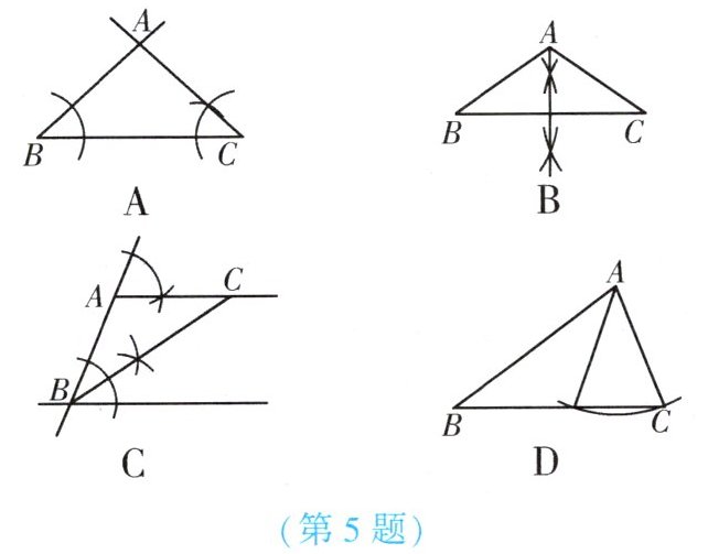 5. (★)根据下列尺规作图的痕迹,不能判断△ABC 是等腰三角形的是【