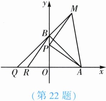 (2)动点$P从点O$出发,以每秒$1个单位长度的速度沿y$轴正半轴运动,运动时间为$t\mathrm{s}$,连接$AP$,过点$P作PM\perp AP$,且$PM = PA$,点$M$在第一象限,请用含有$t的式子表示点M$的坐标;