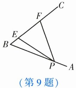 9. 如图, 已知 $ \angle ABC = 60^{\circ} $, 点 $ P $ 在边 $ AB $ 上, $ BP = 10 $, 点 $ E,F $ 在边 $ BC $ 上, $ PE = PF $. 若 $ BE = 2 $, 则 $ EF $ 的长为 【