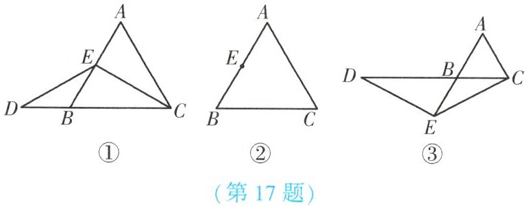17. (★★★)已知在等边三角形ABC中,点E在AB上,点D在CB的延长线上,且ED= EC.