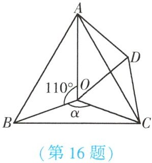 16. (★★★)如图,O是等边△ABC内一点,D是△ABC外的一点,∠AOB= 110°,∠BOC= α,△BOC≌△ADC,∠OCD= 60°,连接OD.