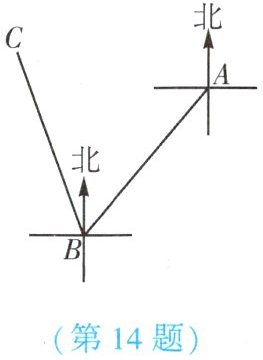14. (★★)一艘轮船由海平面上A地出发向南偏西40°的方向行驶100 n mile到达B地,再由B地向北偏西20°的方向行驶100 n mile到达C地,则A,C两地相距【