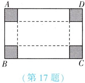 17. (★★)如图,一张长方形硬纸片 $ ABCD $,长 $ AD $ 为 $ (5a^{2} + 4b^{2}) cm $,宽 $ AB $ 为 $ 6a^{4} cm $,在它的四个角上分别剪去一个边长为 $ 2a^{3} cm $ 的小正方形(阴影部分所示),然后折成一个无盖的盒子,请你求出折成无盖盒子所用硬纸片的面积。