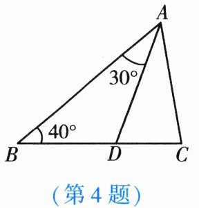 4. 如图,在△ABC中,AD平分∠BAC且与BC相交于点D,∠B= 40°,∠BAD= 30°,则∠C的度数是【