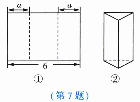 7. 如图①,将长为6的长方形纸片沿虚线折成3个长方形,其中左右两侧长方形的宽相等,若要将其围成如图②所示的三棱柱形物体,则图中a的值可以是【