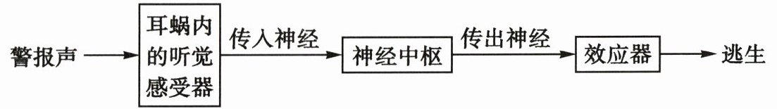B 【解析】外界的声波经过外耳道传到鼓膜,引起鼓膜的振动;振动通过听小骨传到内耳,刺激耳蜗内的听觉感受器,产生神经冲动;神经冲动通过与听觉有关的神经传递到大脑皮层的听觉中枢,就形成了听觉。分析可知,完成该反射的传入神经是听觉神经,选项A正确。逃生演练属于条件反射,这是人出生以后在生活过程中逐渐形成复杂的反射,是在非条件反射的基础上,经过一定的过程,在大脑皮层参与下完成的,是一种高级的神经活动,该反射的神经中枢位于大脑皮层,选项B错误。神经调节的基本方式是反射,反射结构基础是反射弧,反射弧的任何一个环节中断,反射不能进行,选项C正确。演练利于提高对突发状况的应变能力,增强安全意识,确保师生平安,选项D正确。