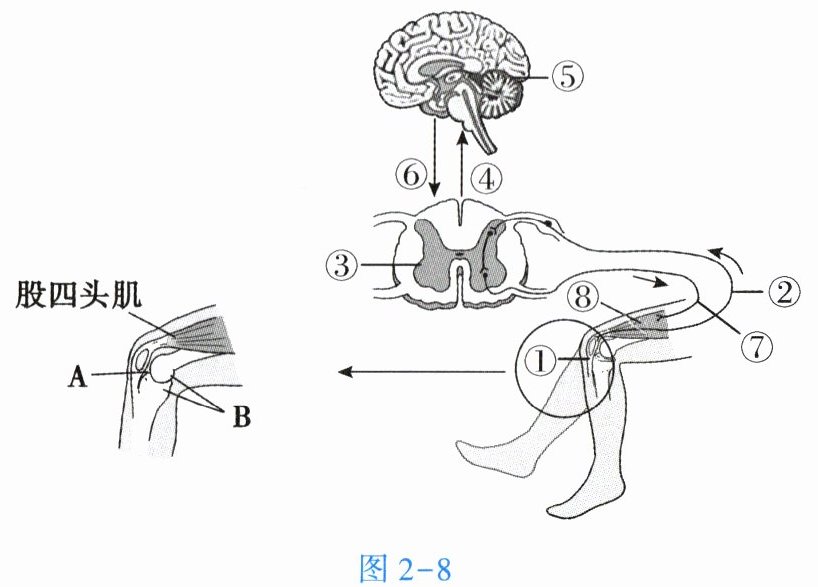 22. (7 分)甲、乙两位同学课间尝试进行膝跳反射实验,人体神经系统及其所调节的部分器官如图 2 - 8 所示,请据图回答下列问题。