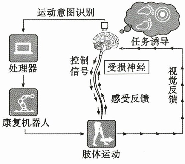 (2)接受 BCI 治疗的高位截瘫患者能自主喝水。分析可知 BCI 技术主要模拟了