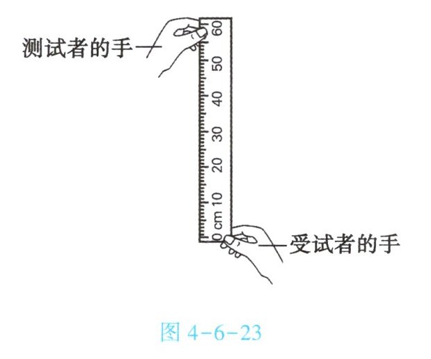 1. 小慧测定反应速度开始和结束时手的位置如图 4-6-22 所示,她测得的结果是【